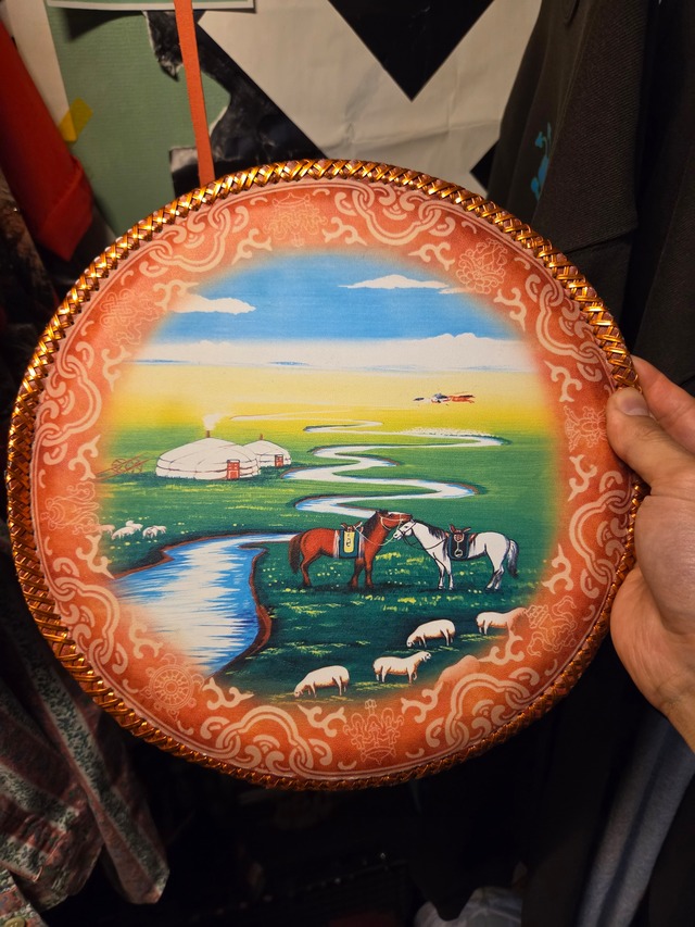 Leater Paint Object 29.5×29.5cm レザーに愛らしいペイントが施されたオブジェクト。元々は敷物のような出で立ちですが、 このイラストを是非目につくように飾りたいところ。 お部屋の空気をほぐしてくれるはず。