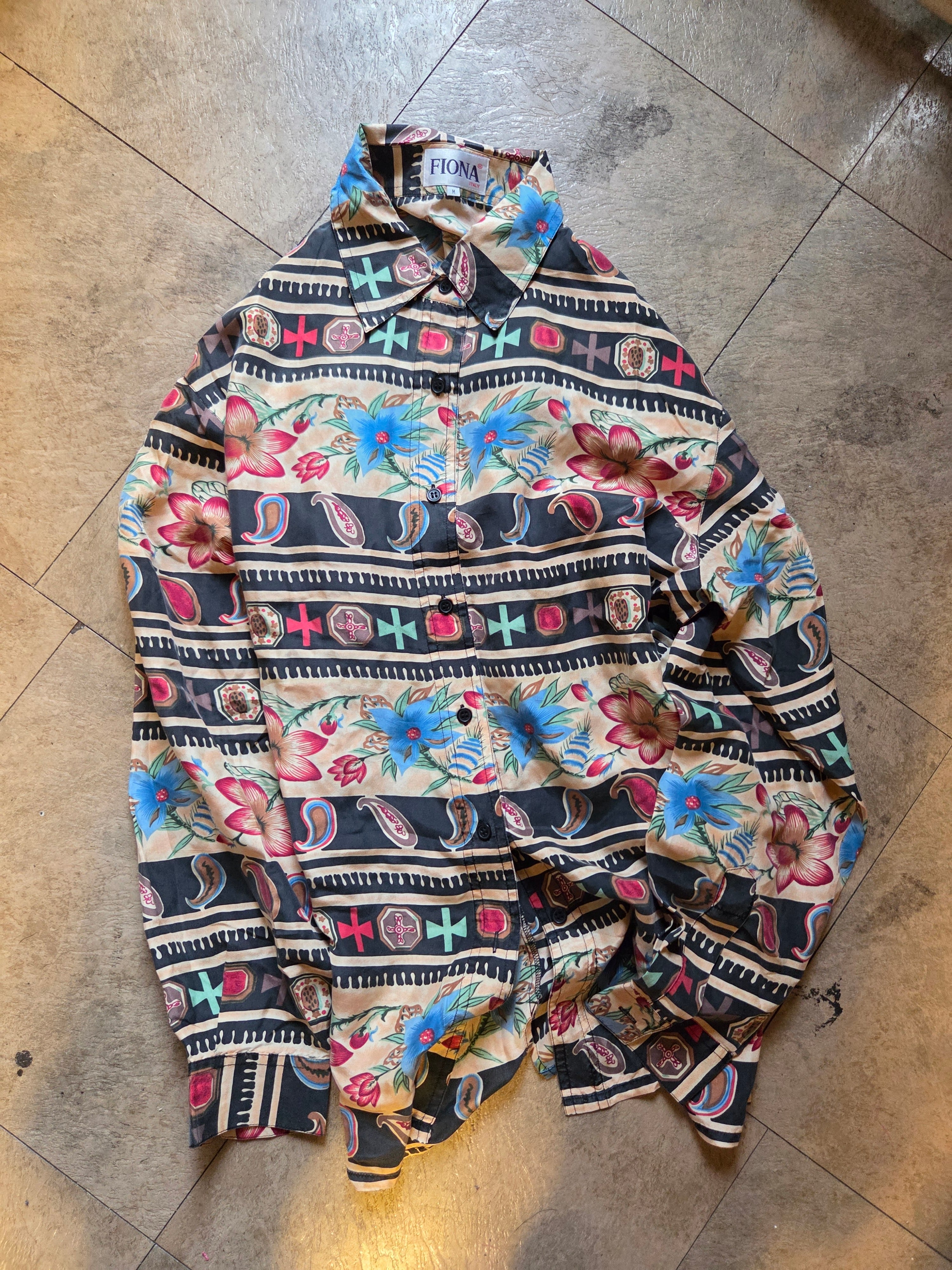 フラワー×ペイズリー等、ユーロ調なモチーフやカラーリングが特徴のシルクシャツ。