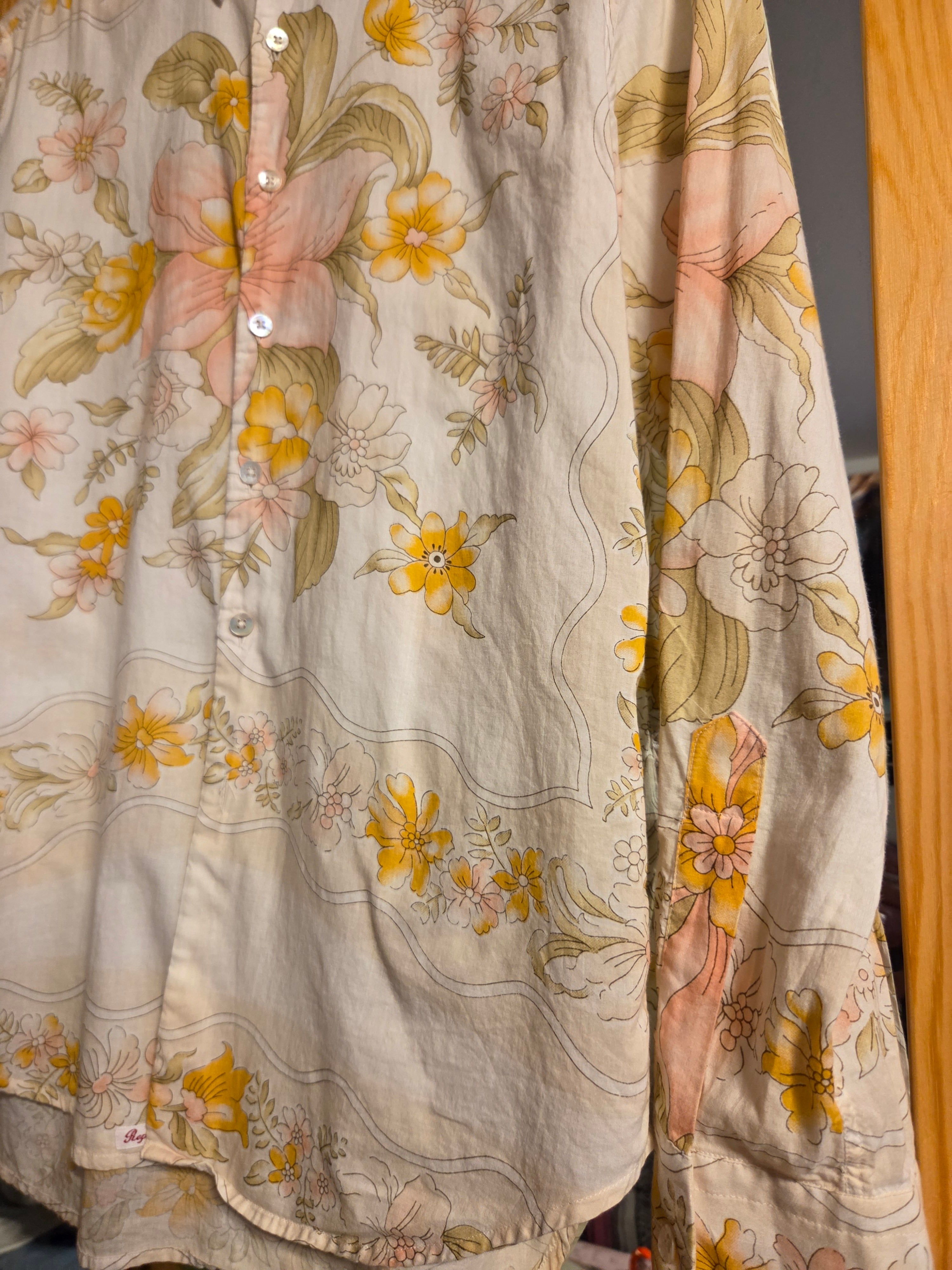 あわせようによって秋から春まで長く活躍するであろう1枚で、フローラスシャツのエレガントなムード今からおすすめしたいです。