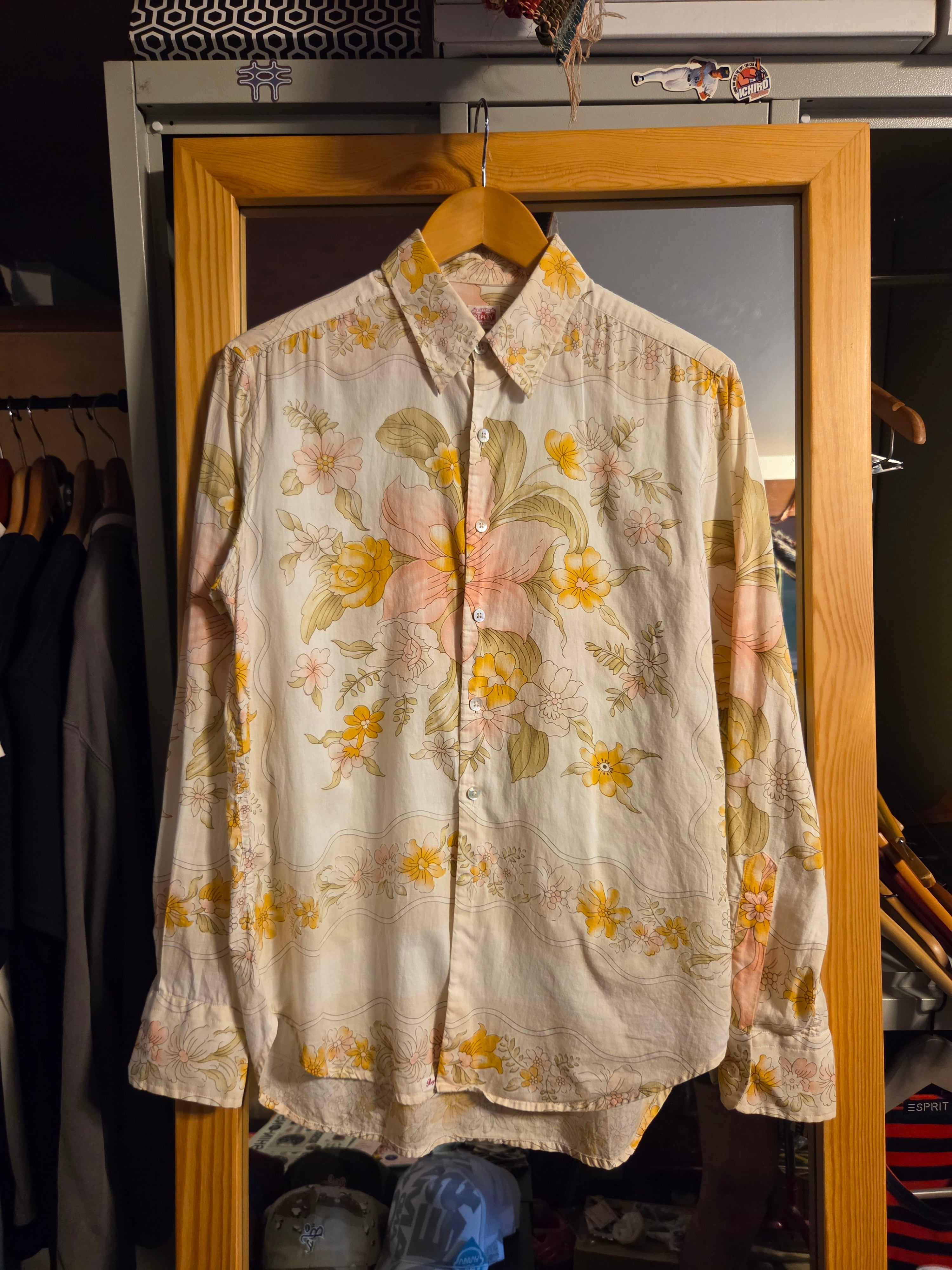 水性の様な柔らかいプリントデザインが印象的なコットンシャツ。