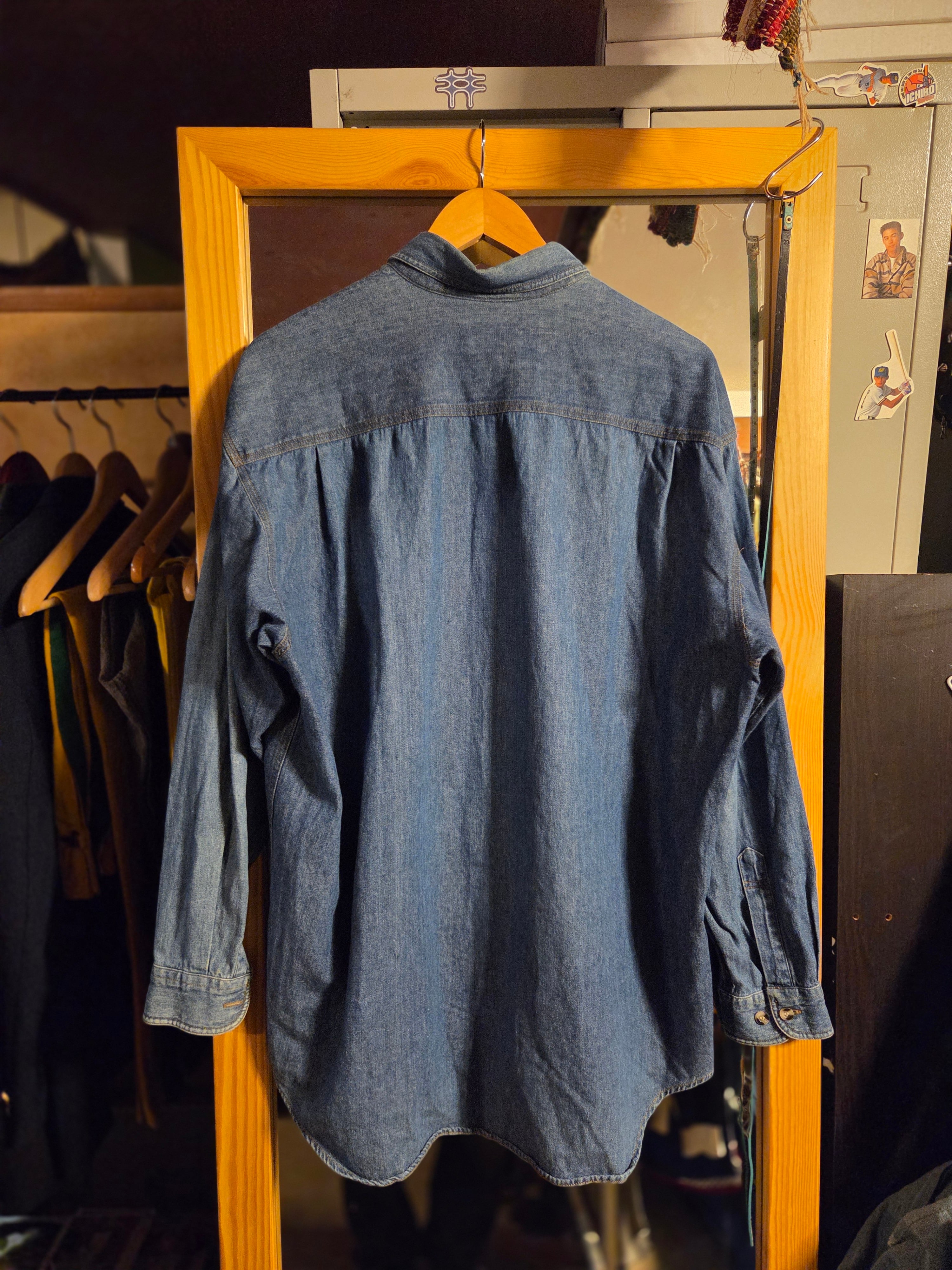 Re: シリーズ レギュラーの90sデニムシャツをジップアップ仕様にすることで、スウェットやニットとも相性よくジャケット的活用の出来るデザインに。