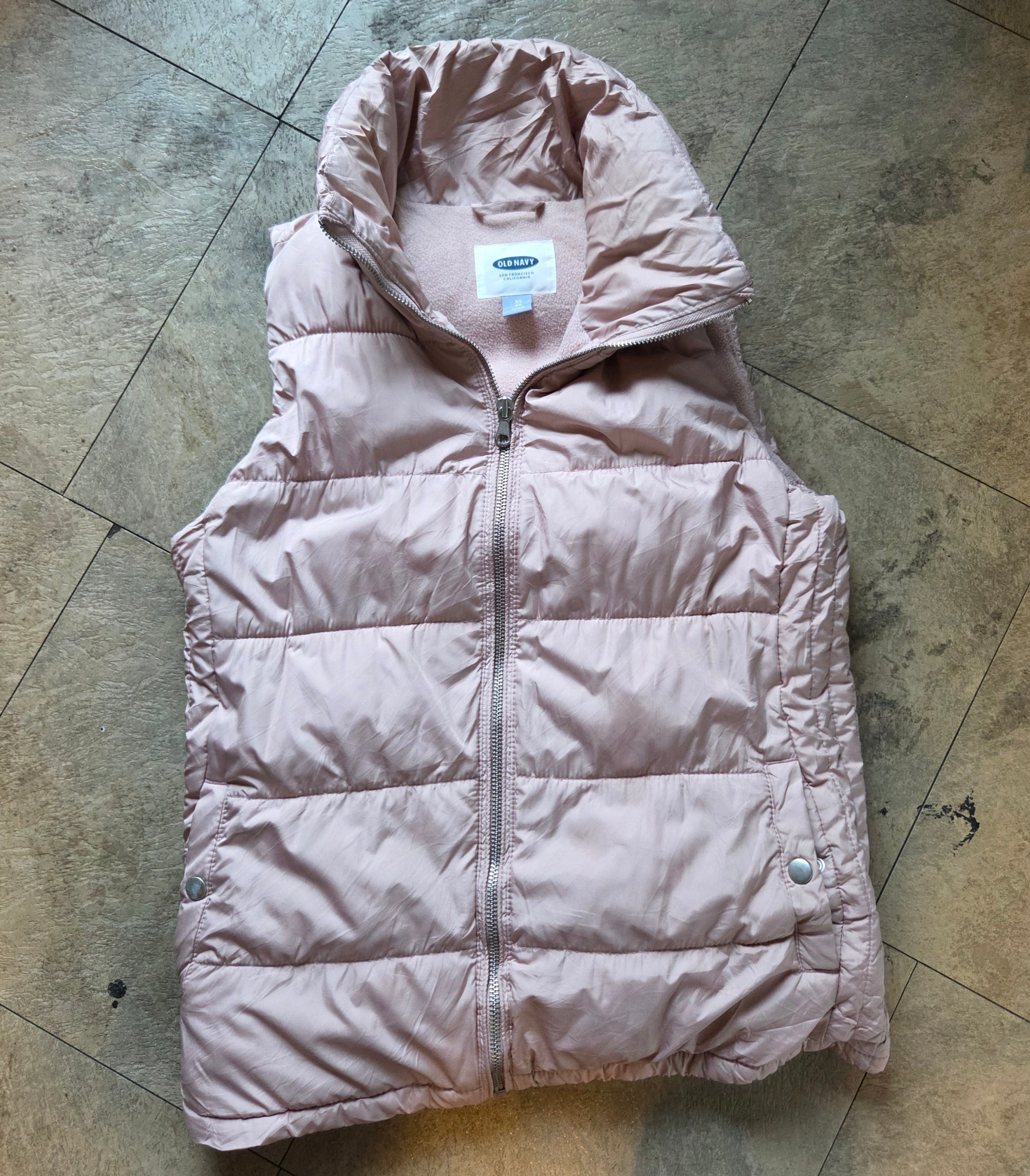 OLD NAVY サーモンピンクのややシャイニーなダウンベスト。