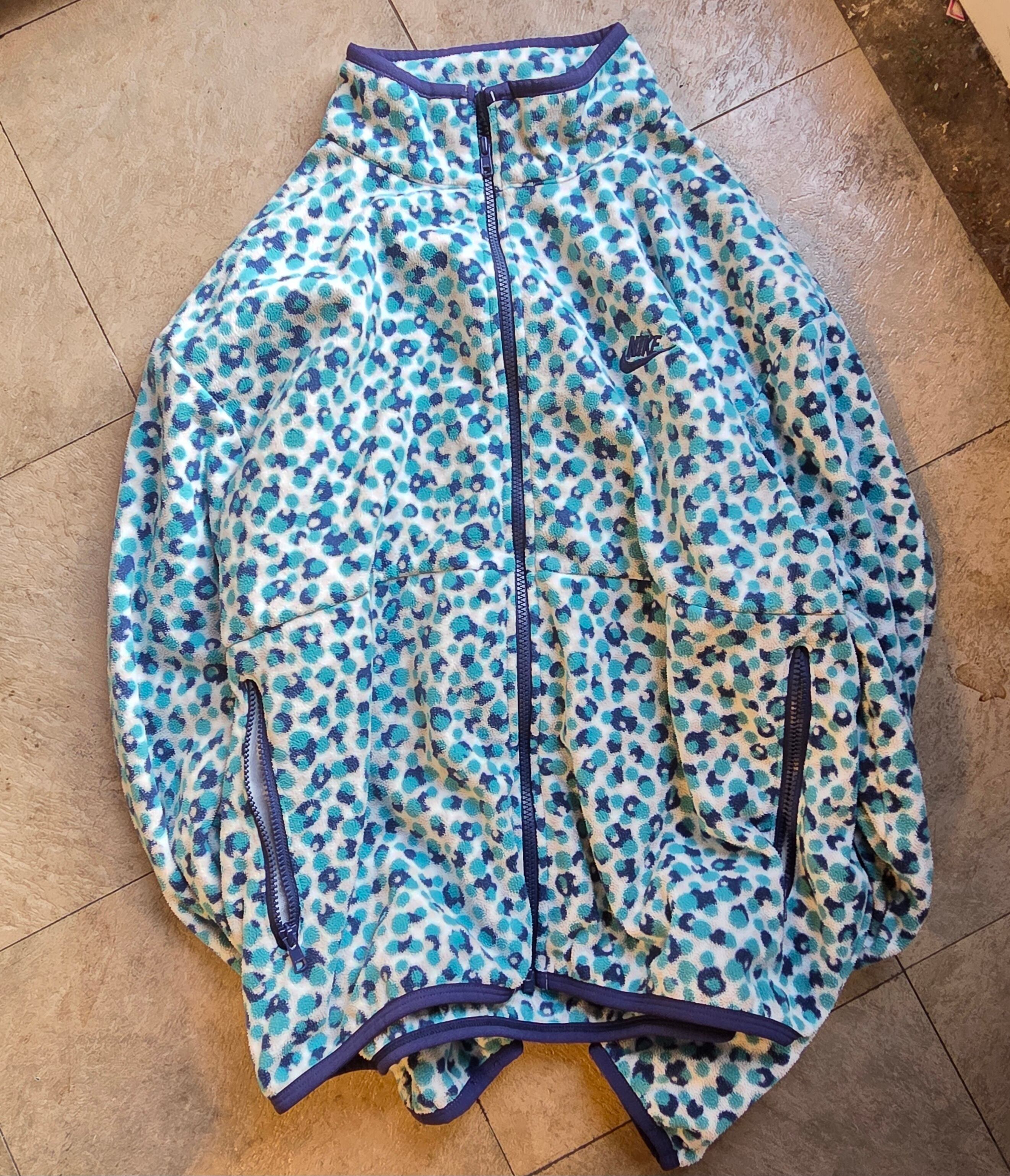裏地は無いので、アウターのインナーに花を添えるイメージで。勿論春はトップスに。