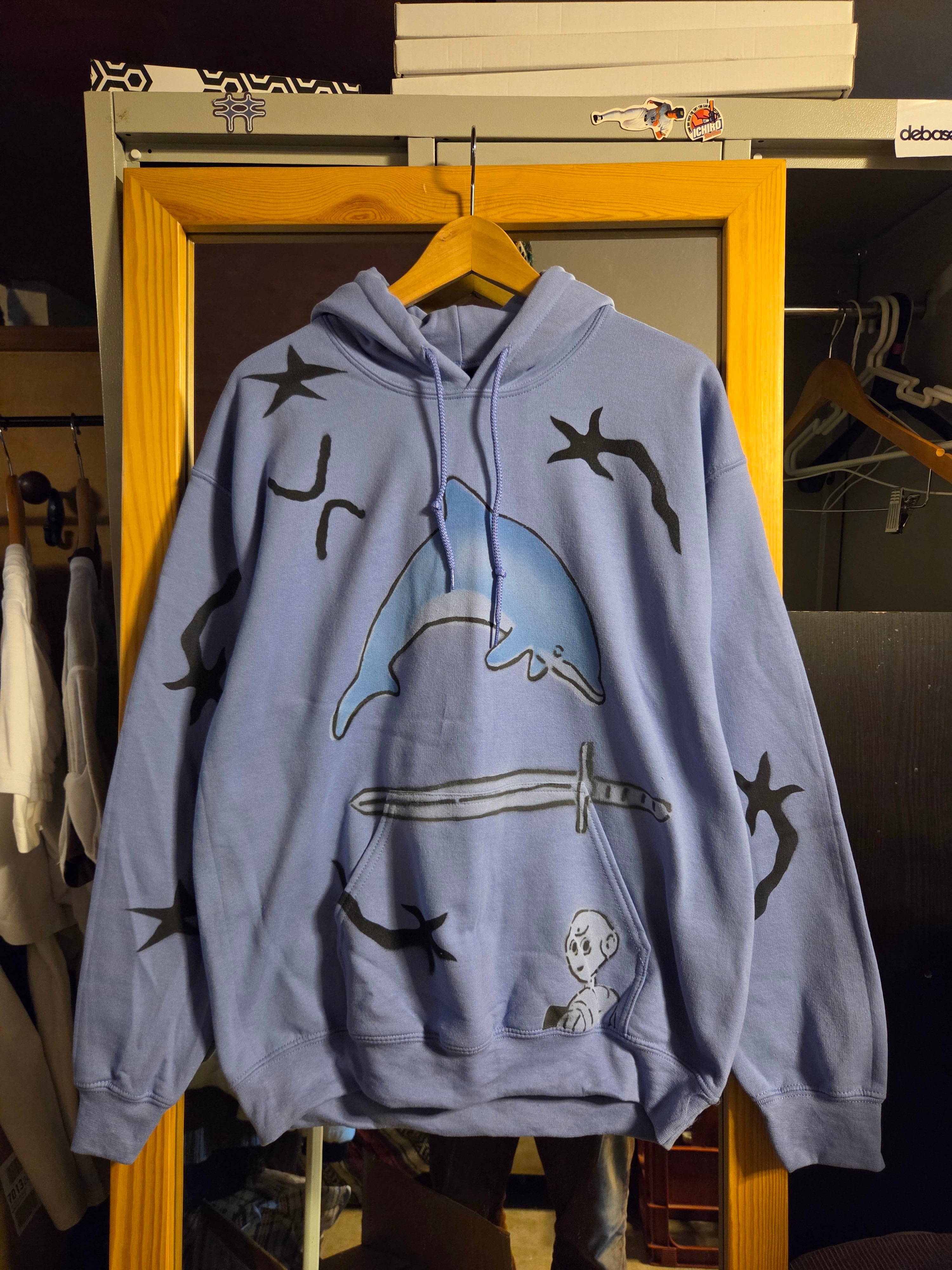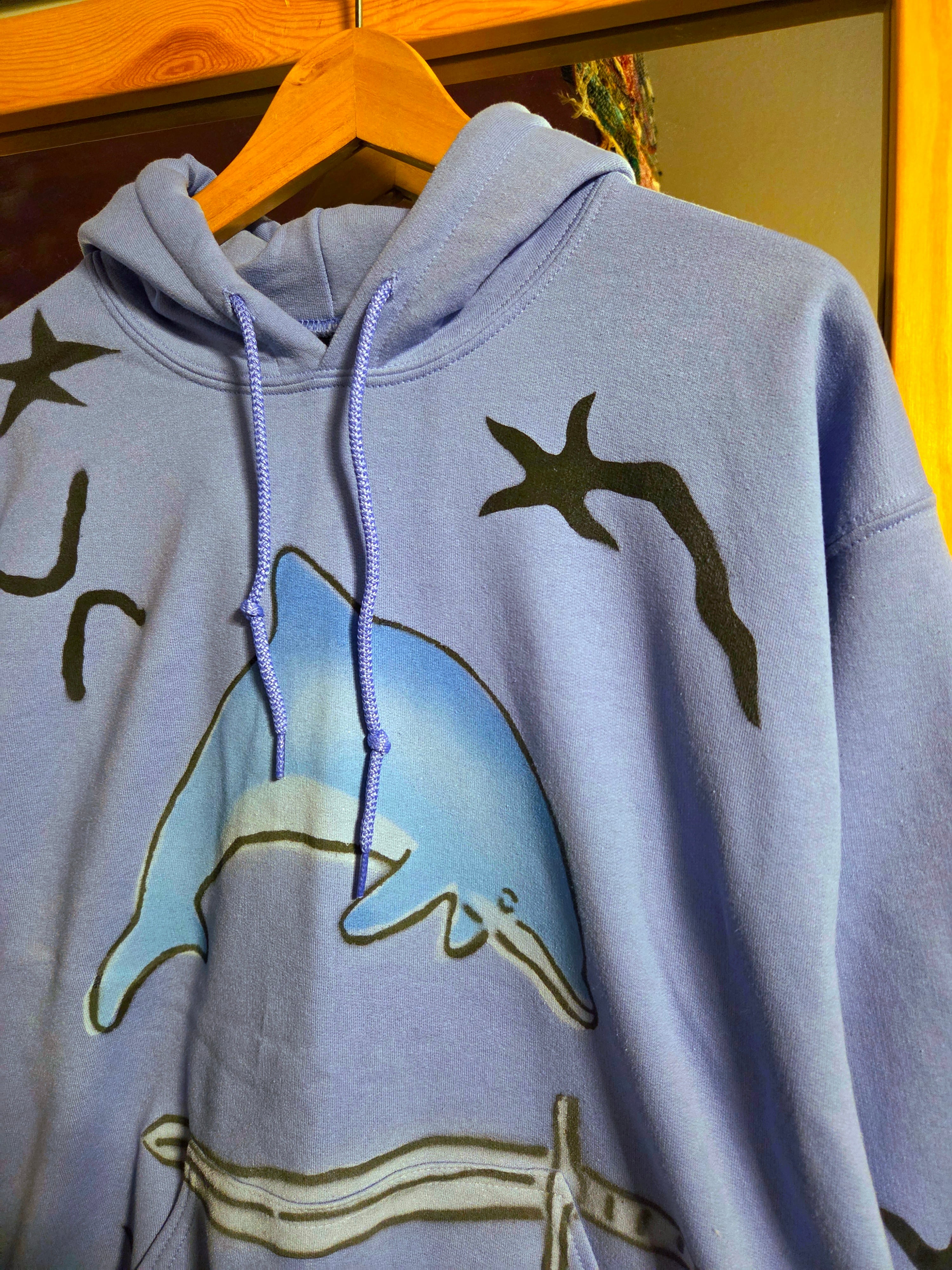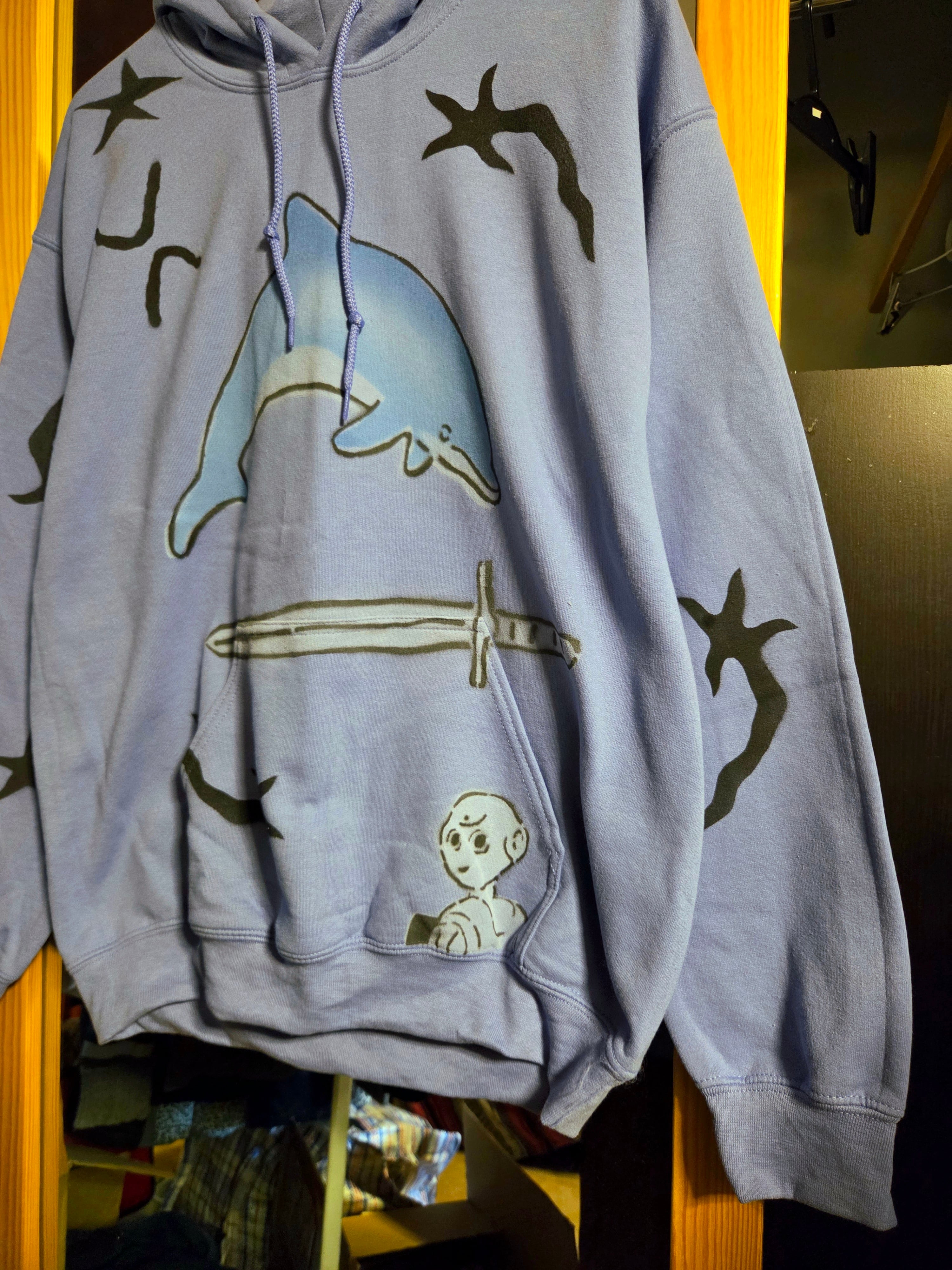 "PERFECT PLAN"による散りばめられたハンドペイントのモチーフがかわいいフーディー。