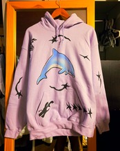 "PERFECT PLAN"による散りばめられたハンドペイントのモチーフがかわいいフーディー。