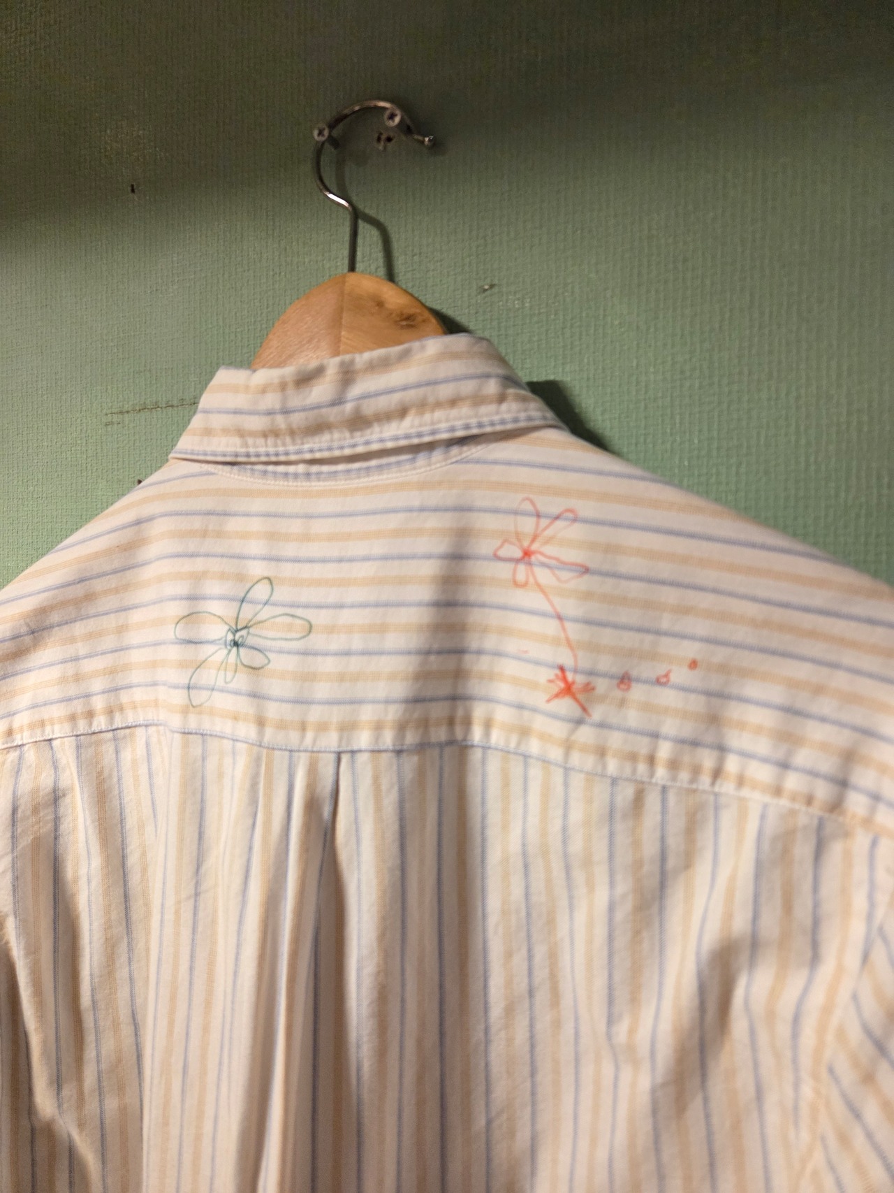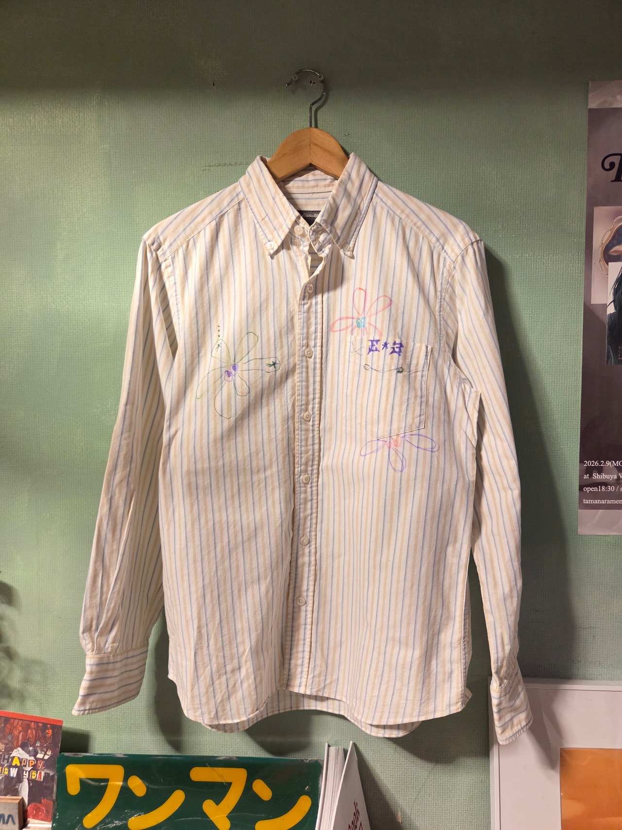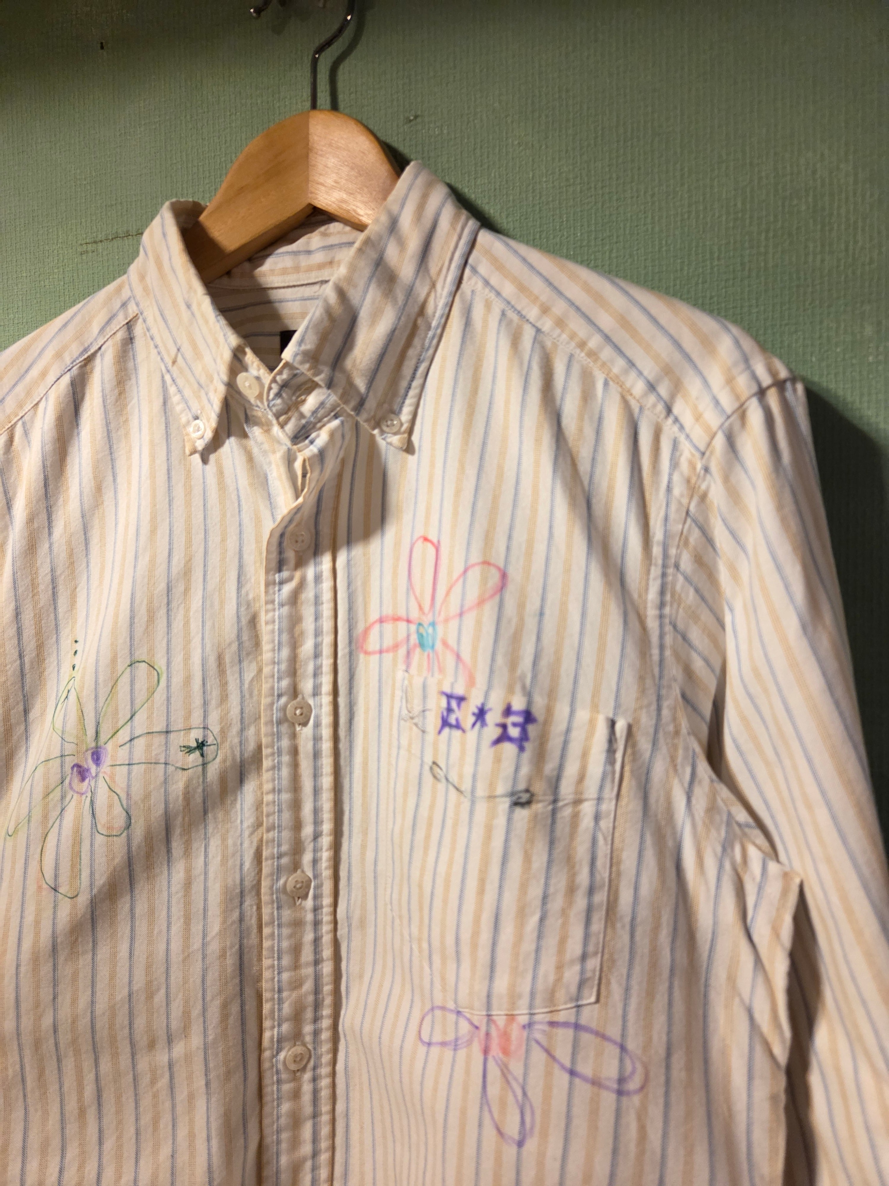 Re: シリーズ Eddie Bauerのストライプシャツにフラワーモチーフをあしらって。