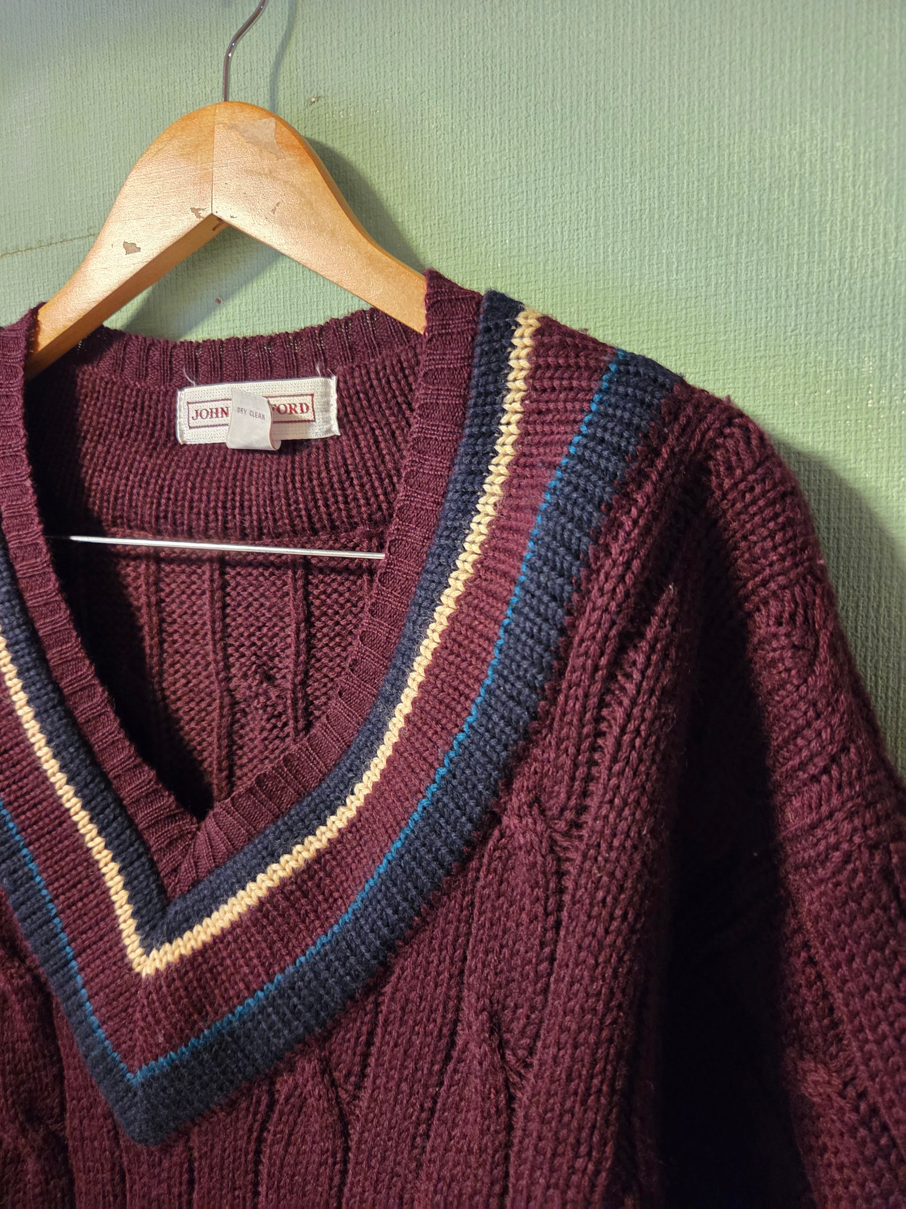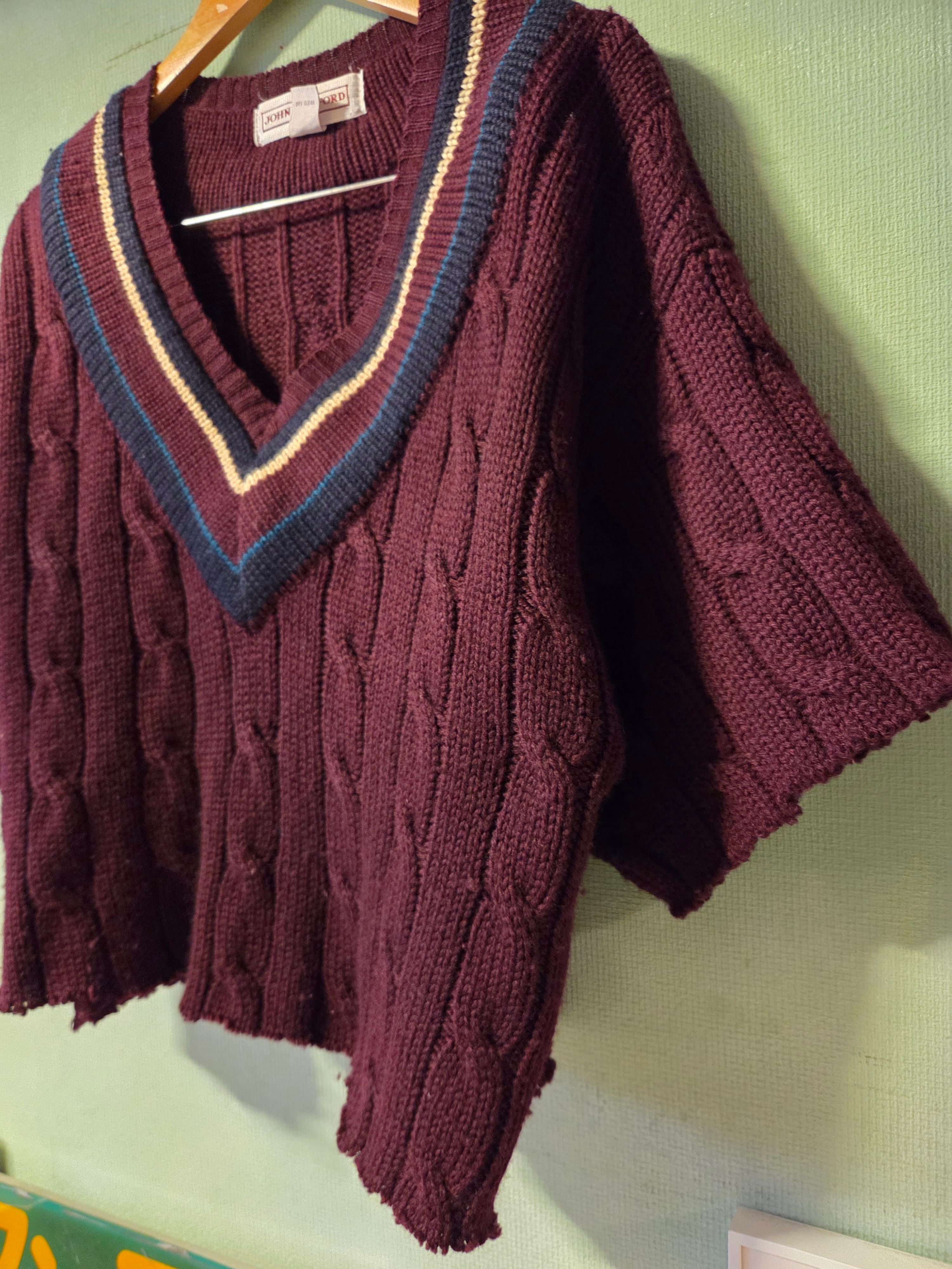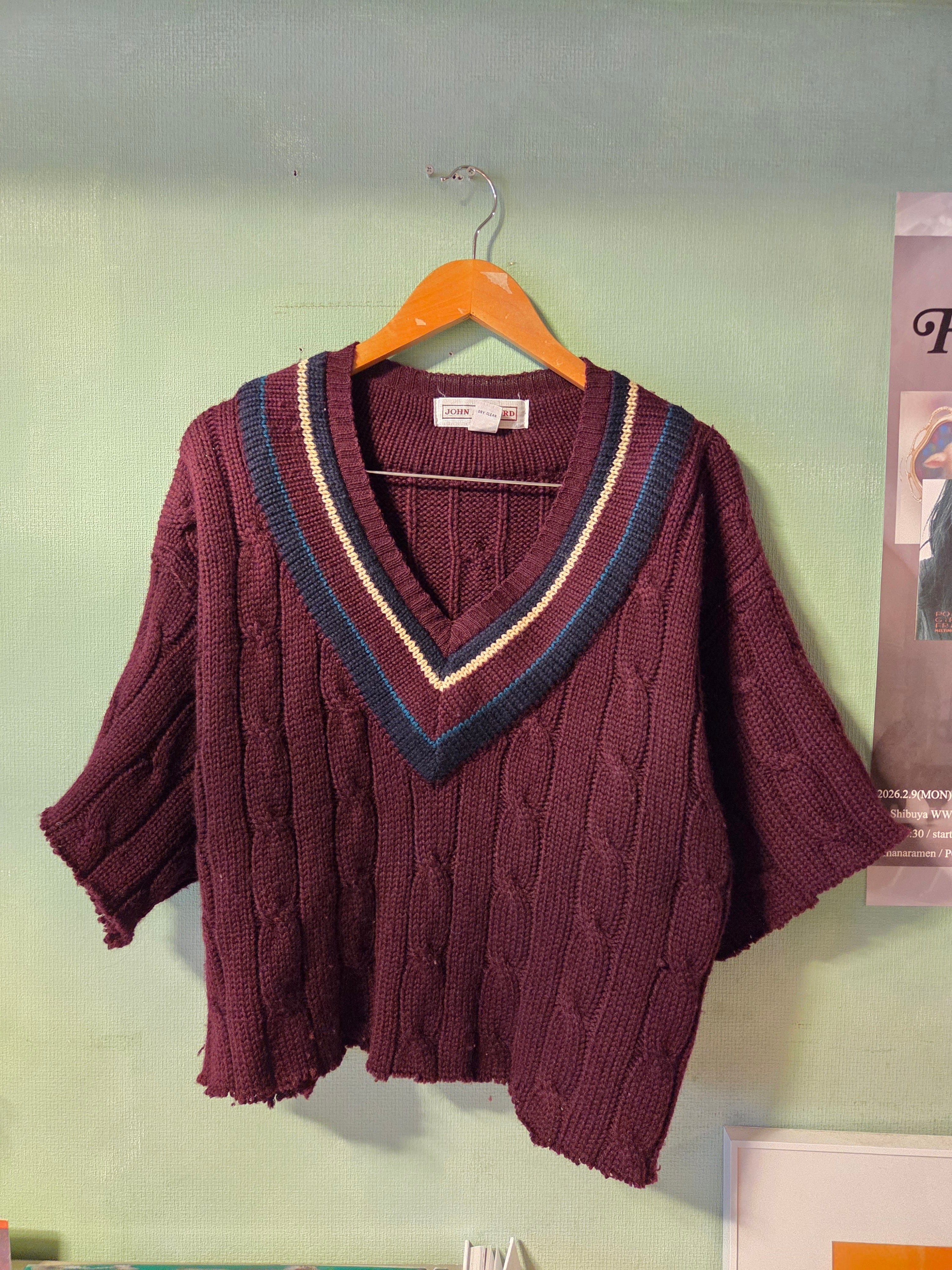 スクール調のVネックニットが大胆なカットオフ。カラーリングも完全に主観ですが好みな1着。