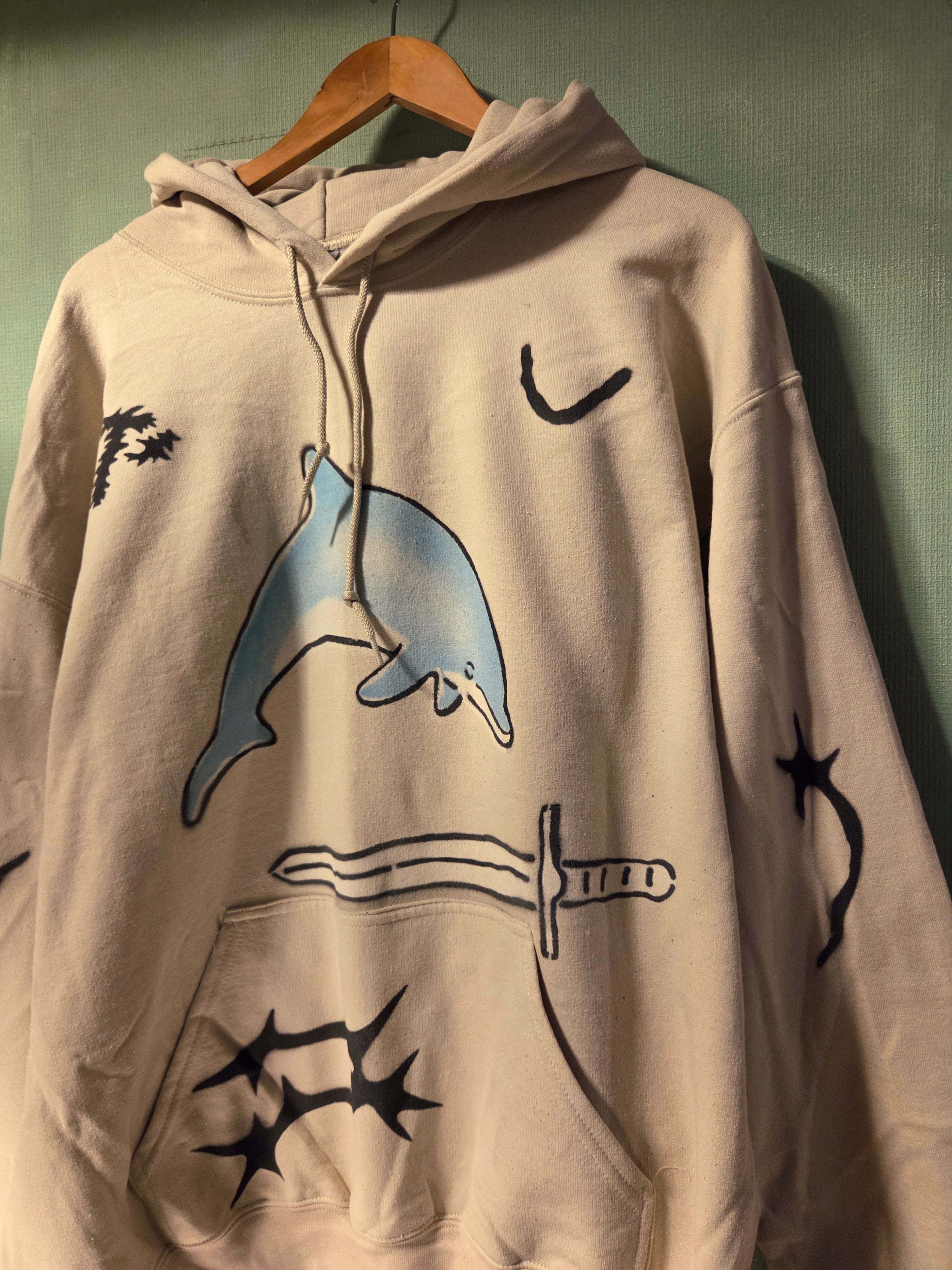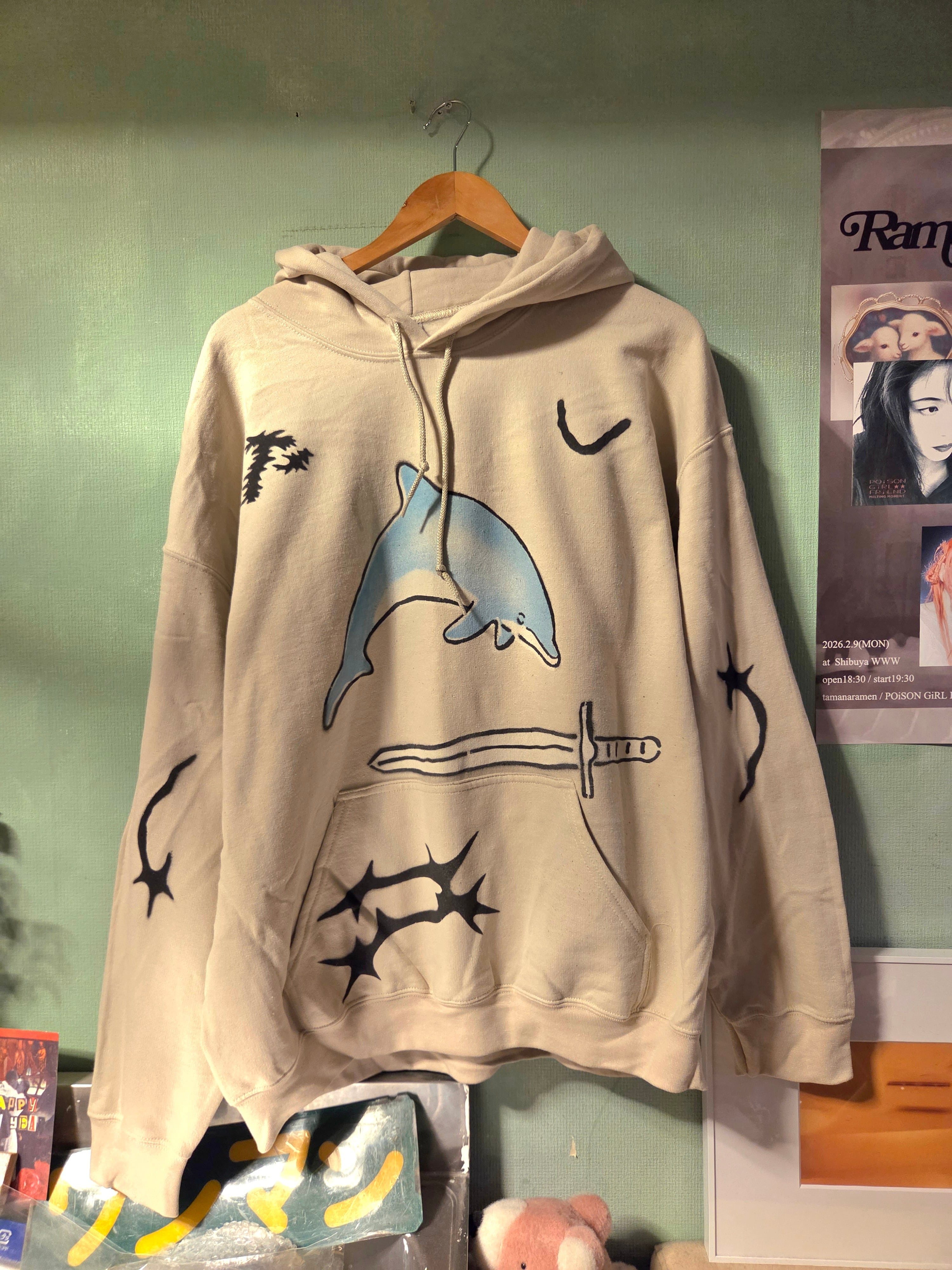"PERFECT PLAN"による散りばめられたプリントのモチーフがかわいいフーディー。