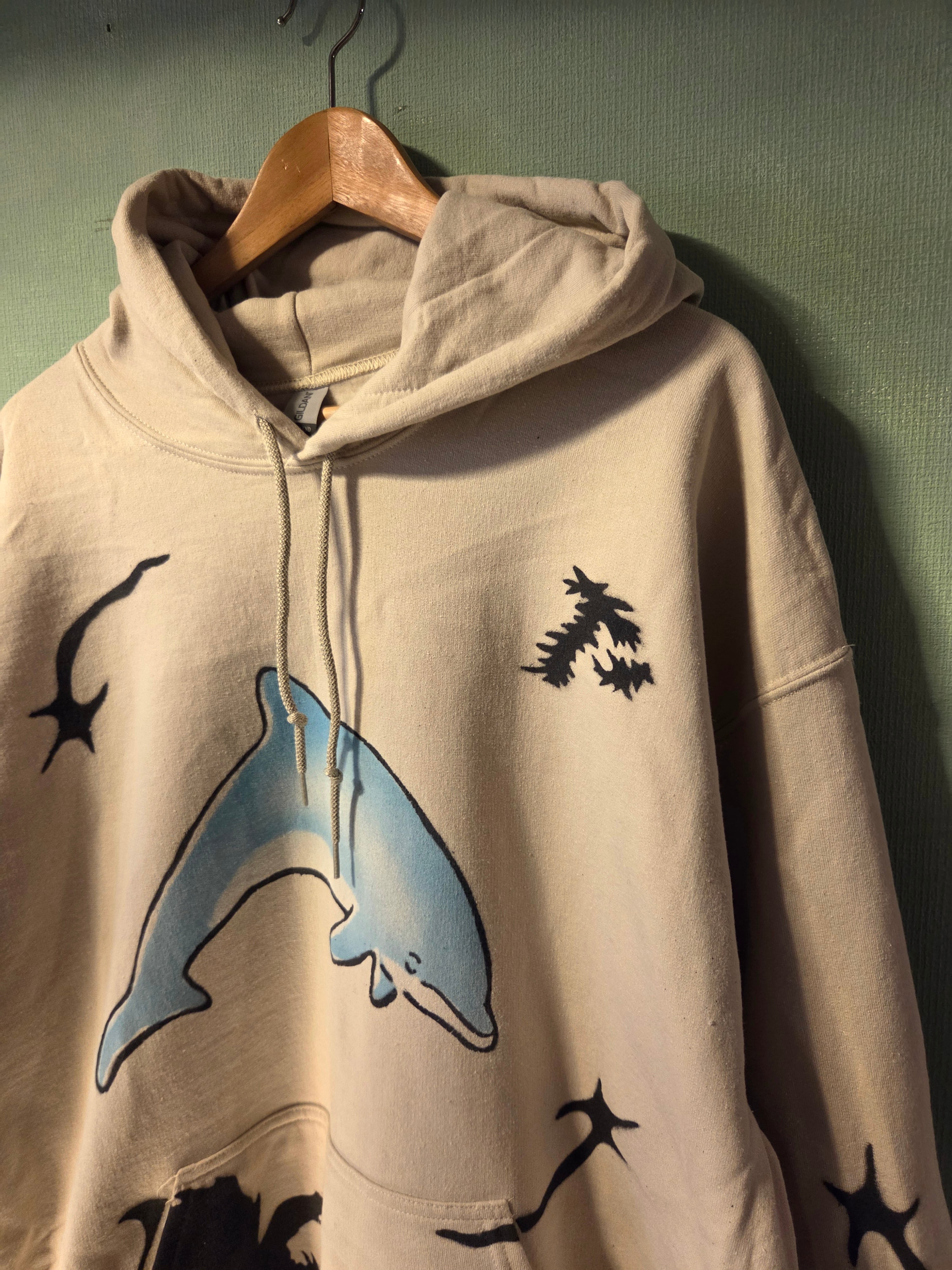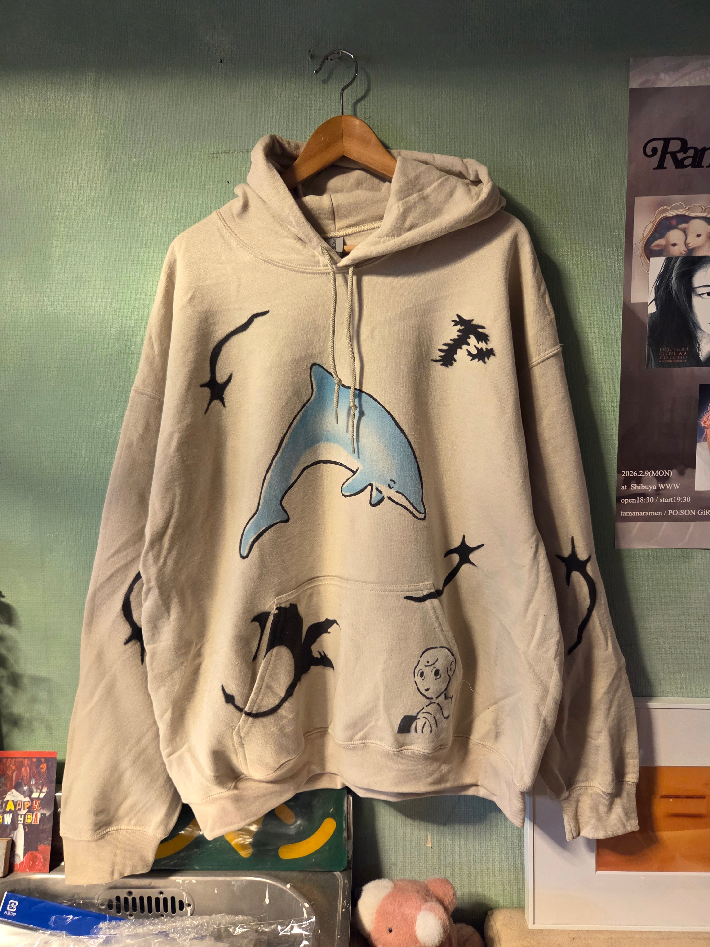 "PERFECT PLAN"による散りばめられたプリントのモチーフがかわいいフーディー。