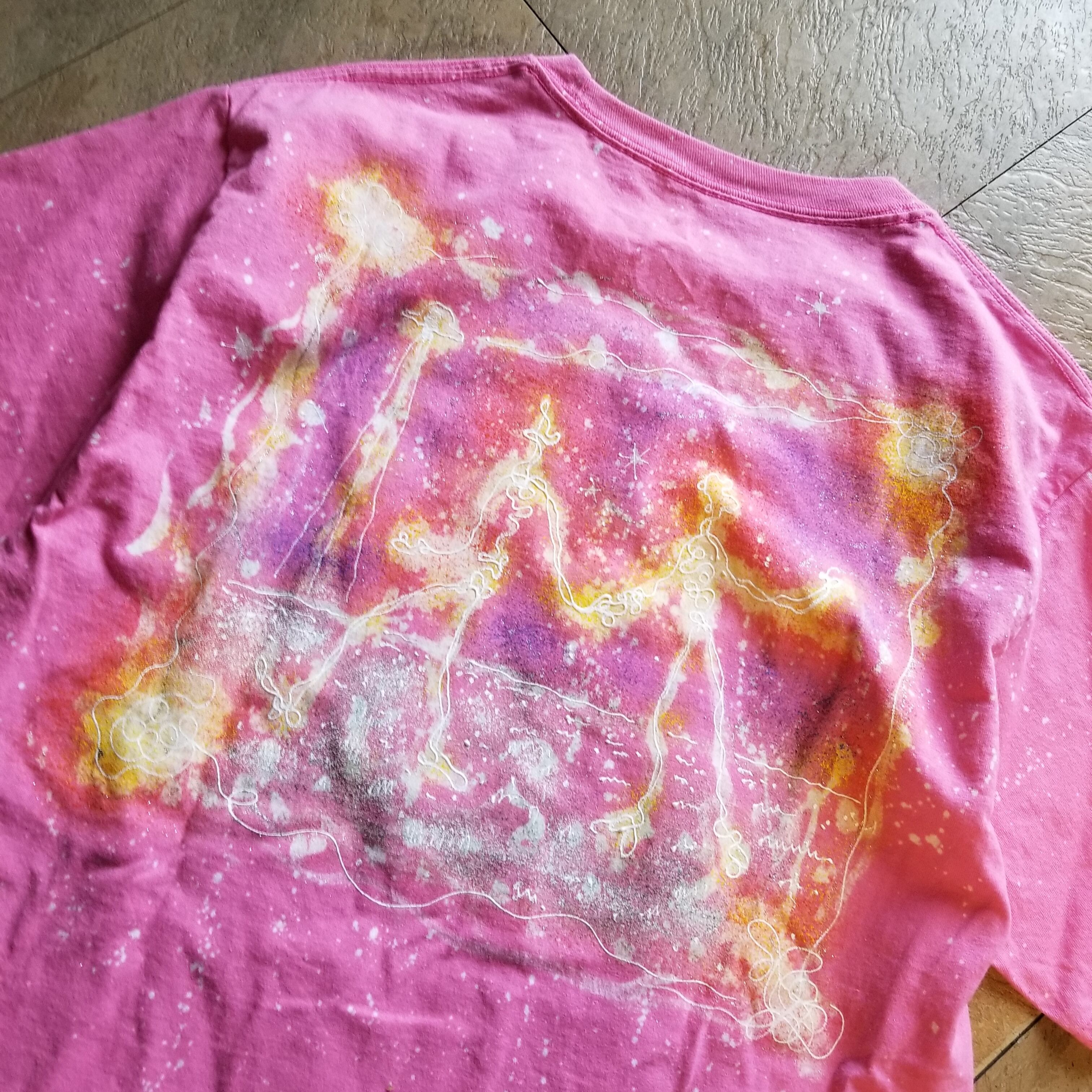 ランダムに衣服をブリーチした痕跡が、どんなものに見えるかドローイングして、1点ずつ仕上げています。