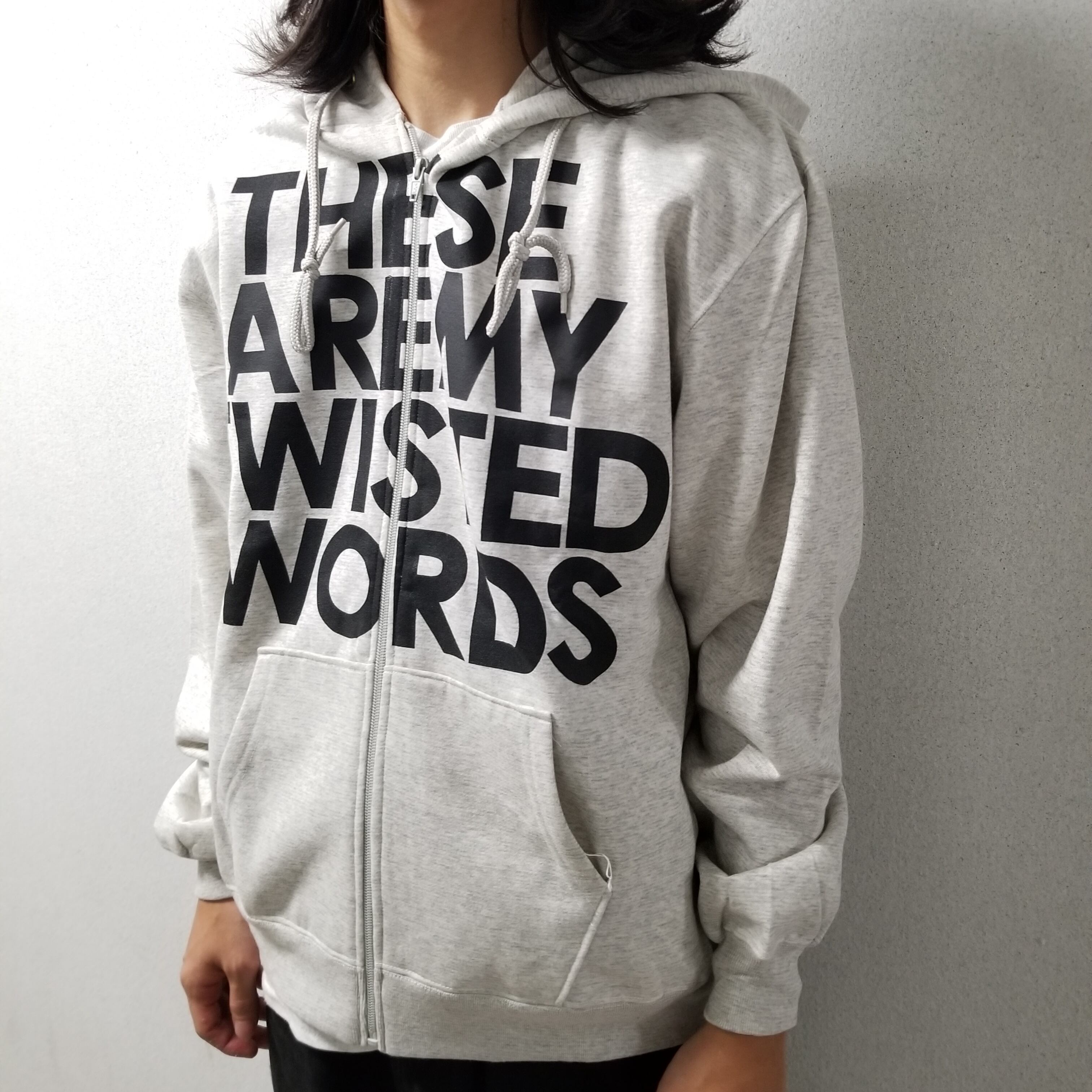 ARMYパーカーのリメイク品は昔から良く見かけていて、足したり引いたり切ったり貼ったり付けたり描いたりと様々あったのを記憶しています。この服はそれのどこに属されるのかどこにも属さないのか分かりませんが、今この時代に自分にとって大事な印刷と文字で形に残せて良かったです。少なくても何か伝わるものがあればいいなと。