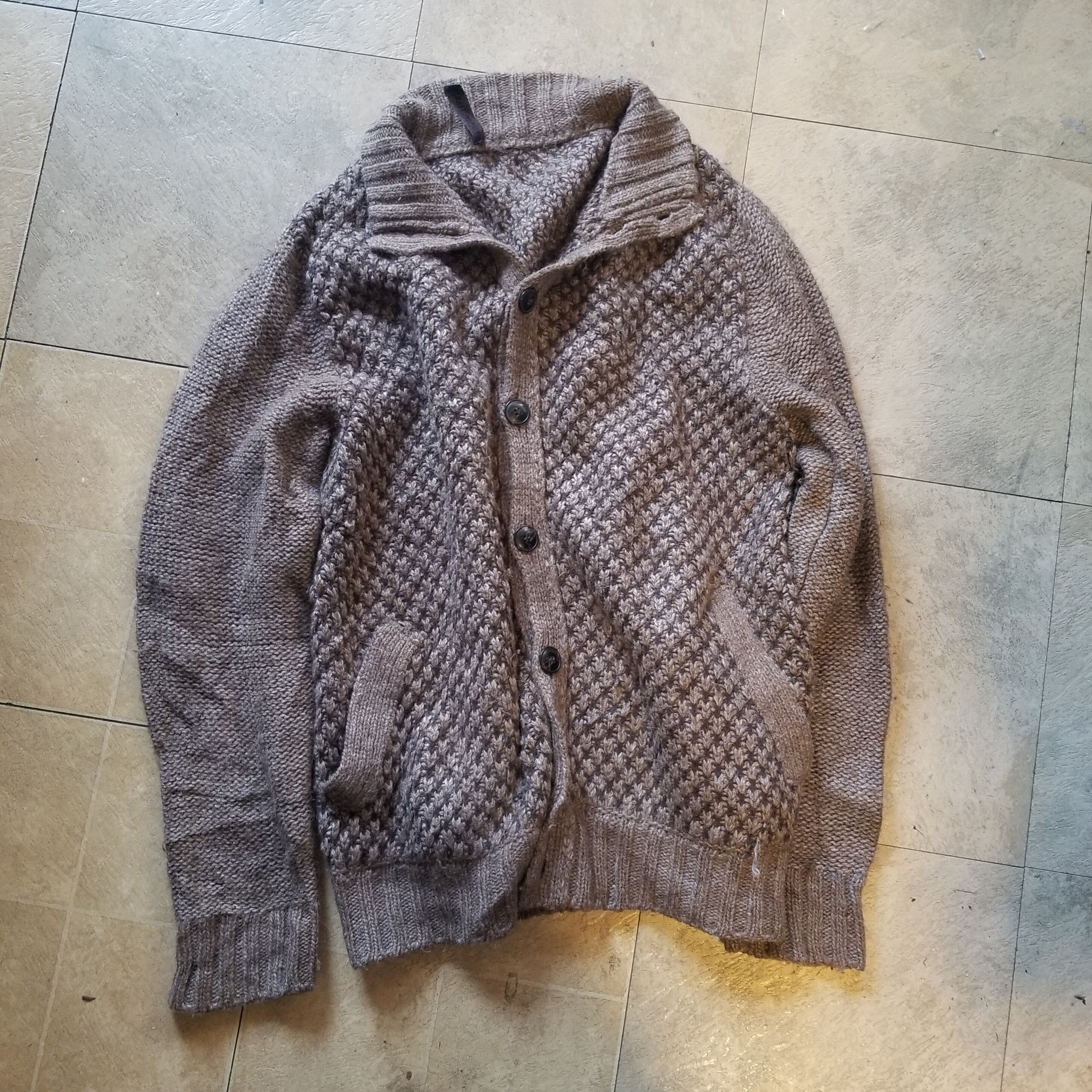 所々の解れとリブ切替、春まで視野に入れるラフな生地感。
